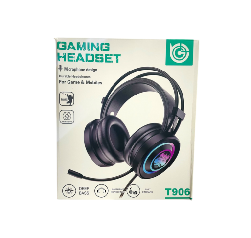 Los Audífonos Gaming Headset T906 ofrecen una experiencia auditiva potente, clara y cómoda. Diseñados para los verdaderos gamers, combinan tecnología de sonido inmersivo con un diseño ergonómico y luces LED que realzan tu setup.